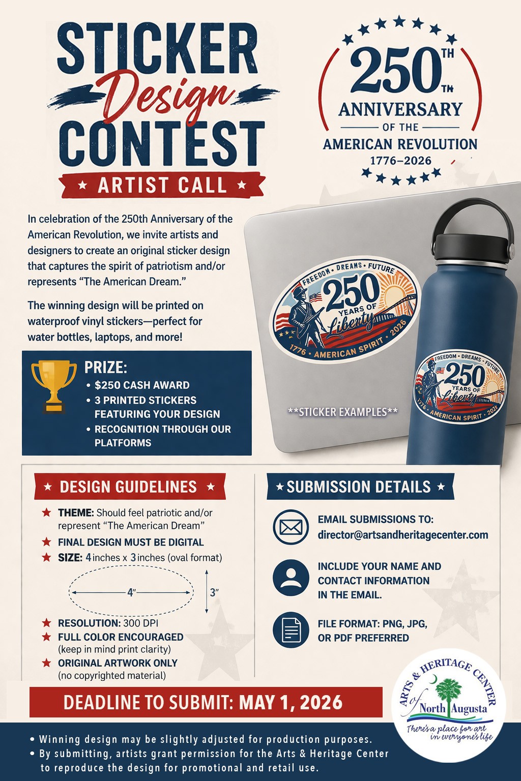 In celebration of the 250th Anniversary of the American Revolution, the Arts & Heritage Center of North Augusta is inviting artists and designers to take part in a special Sticker Design Contest.